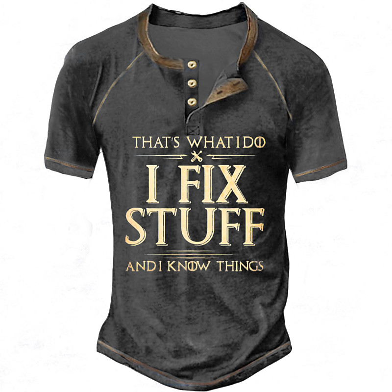 Mens Henley Graphic Tee That's What I Do I Fix Stuff And I Know Things Short Sleeve Hobbies Lifestyle T-Shirt