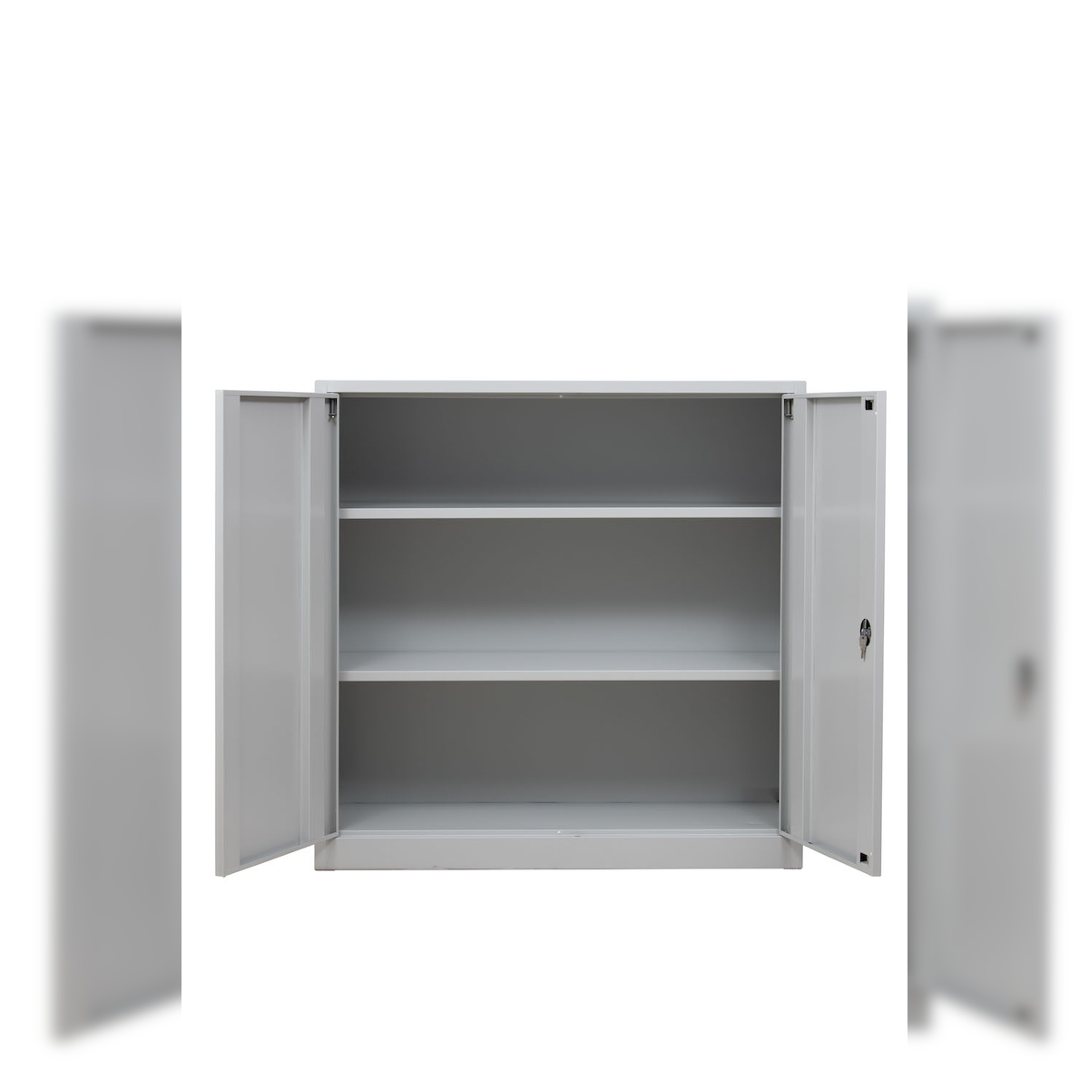 PROREGAL Flügeltürenschrank Badger | 2 Fachböden | Eurolock Griff Sockel | HxBxT 120x120x42 cm | Grau | Lackiert