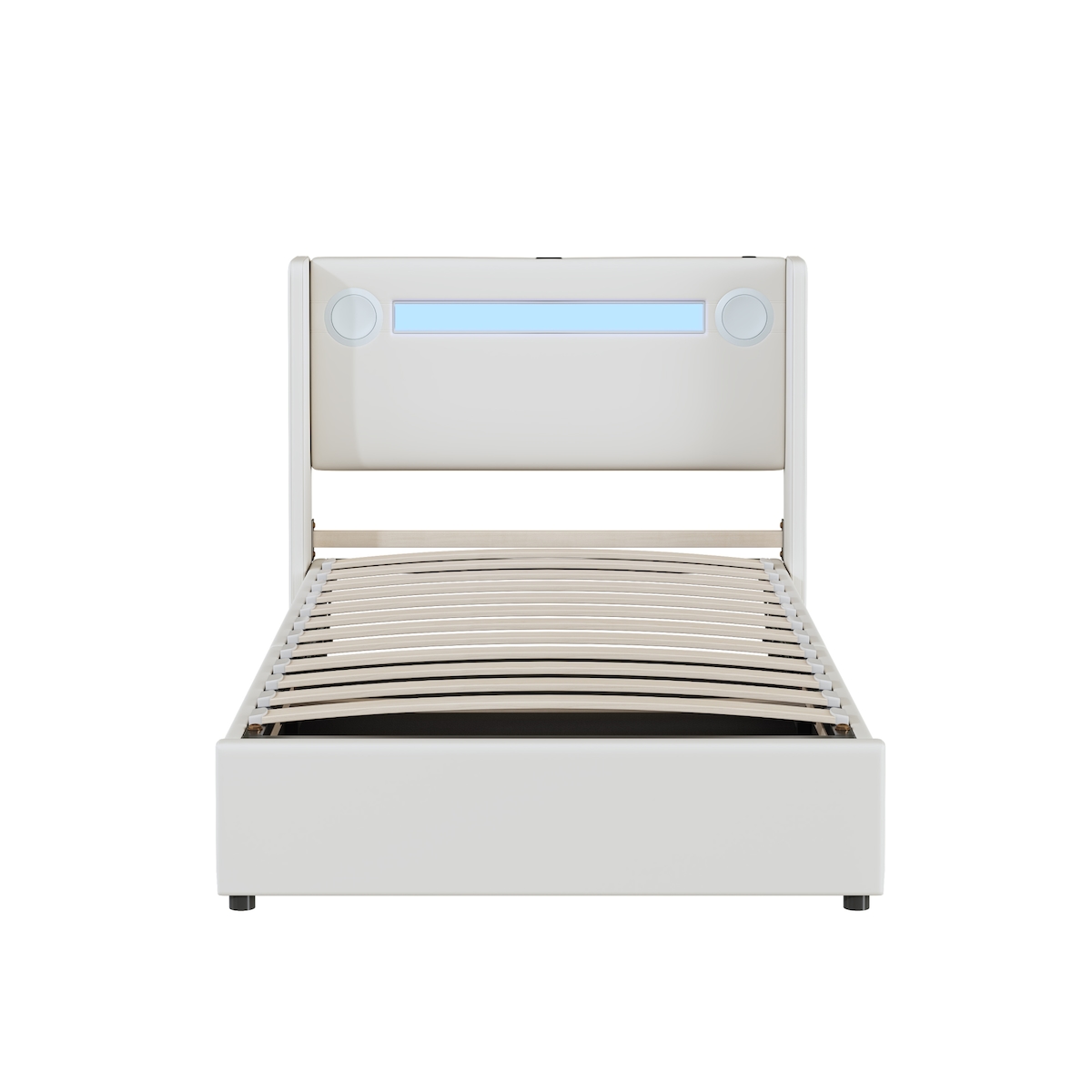 Merax Polsterbett 90x200 Bett mit LED-Lichtleiste, Bluetooth-Player und USB-Aufladung, PU-Leder-Aufbewahrungsbett, Weiß