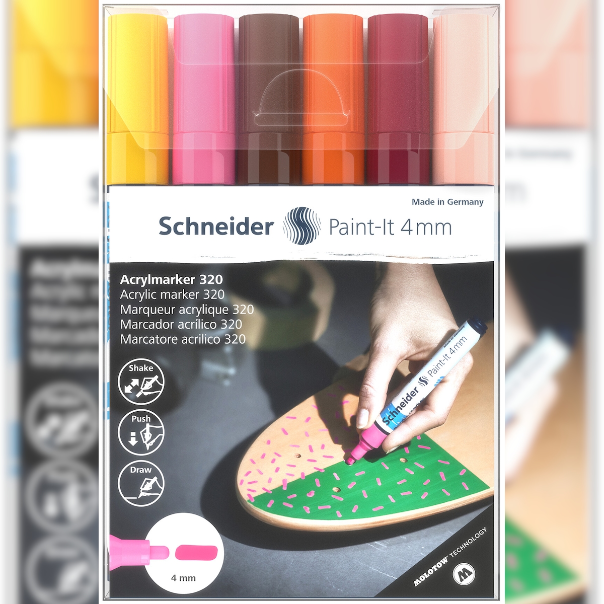 SCHNEIDER Jewelbox 6x Paint IT 320 4 mm gelb, rosa, braun, orange, bordeaux, apricot