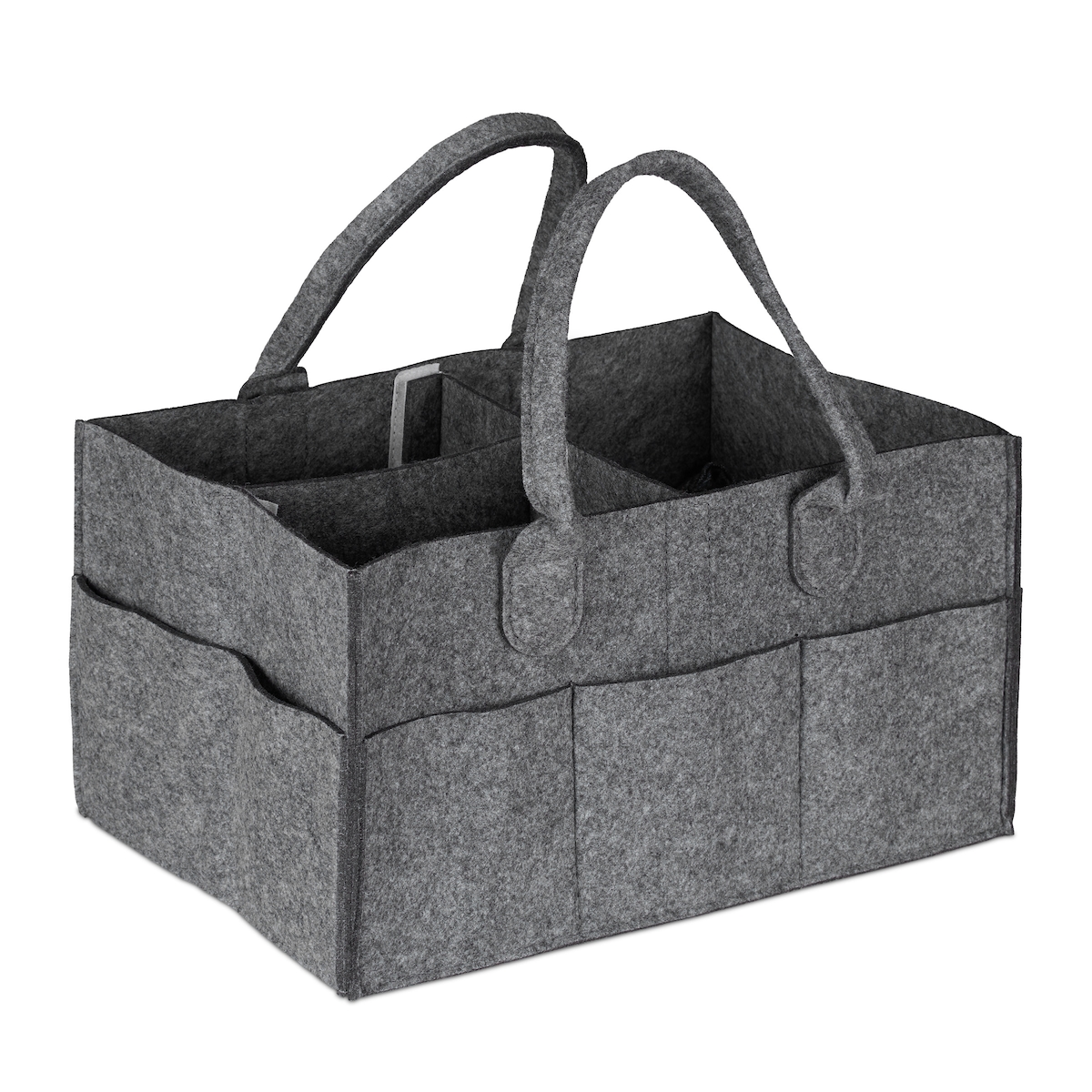 Relaxdays Baby Windel Caddy, 11 Fächer, entnehmbare Trenner, tragbar, Filztasche Auto, Wickeltisch Organizer, dunkelgrau