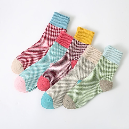 Calzini Calzini Sportivi Calzini divertenti Esercizio all'Aperto Camminata Bicicletta / Ciclismo Calore Termico Antivento 5 Paia Grafico Geometrico Poliestere Rosa Verde Cachi Taglia unica