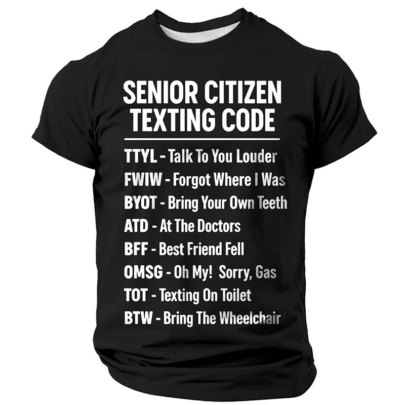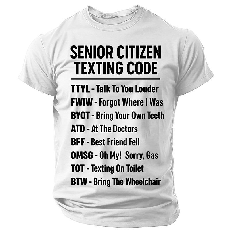 Men's Funny Graphic T-Shirt Senior Citizen Texting Code Humor Lifestyle Tee for Old Age Jokes