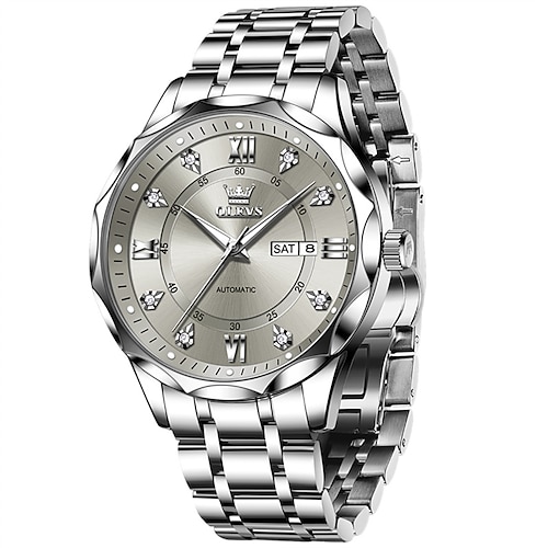 Il Nuovo Orologio da Business da Uomo Olevs con Cinturino in Acciaio Inossidabile Calendario Luminosa e Display del Giorno Orologio Meccanico Automatico Romani Semplice e Moda Impermeabile Orologio