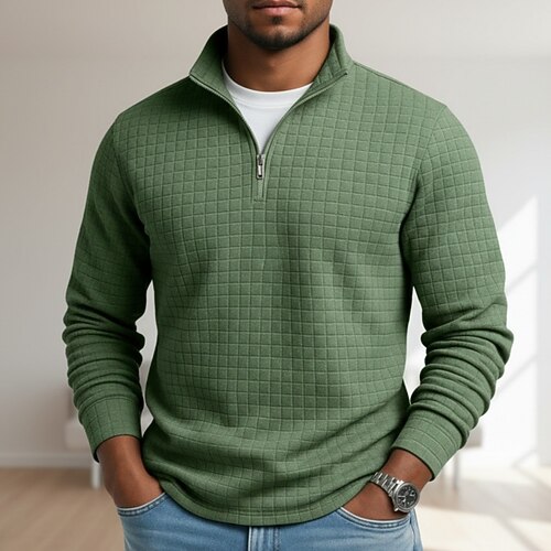 Per uomo Plaid Nido d'ape Felpa Moda Quotidiano Classico Casual Collo alla coreana Zip a un quarto Casa All'aperto Ufficio Lavoro Blu Marrone Verde Grigio Con zip Autunno Inverno progettista S M L XL