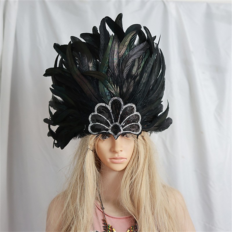 Carnival 2026Rio Carnival Samba Accessories Red and Black Feather Headdress for Women Mardi Gras Festival Dance Accessory Brazil Festival Performance Costume