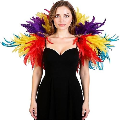 Carnevale 2026 Accessori Samba di Rio Carnevale Scialle di piume colorato per donne - Abbigliamento per festival di rave di Mardi Gras Brasile Festival Costume di performance