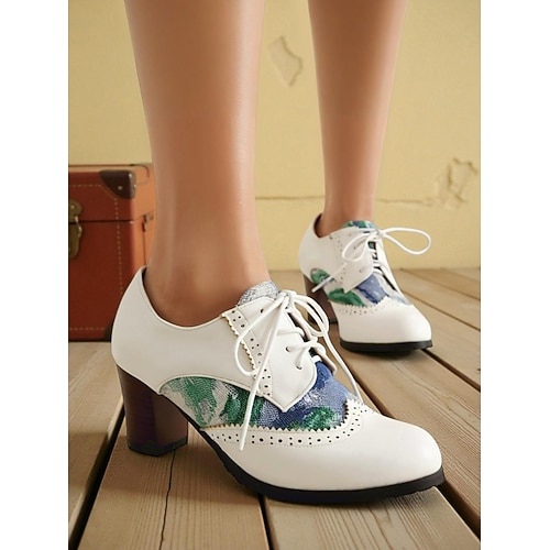 Damen-Oxford-Pumps im Vintage-Stil – Brogue-Schnürschuhe mit dickem Absatz für die Arbeit, das Büro und die Freizeit