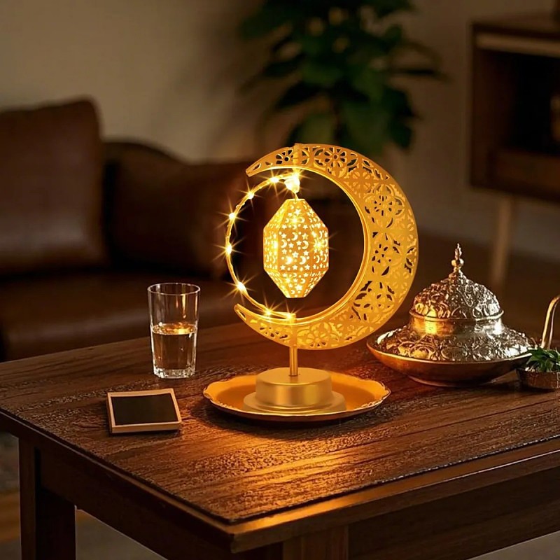 Ramadan EID wrought iron decorative desk lamp, star moon lantern, indoor bedroom atmosphere lamp, AAA battery box 26 17CM
