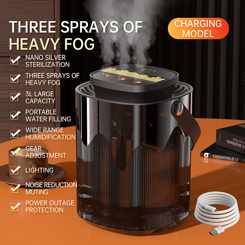 New Creative Humidifier Household Atomizer 3L Large Capacity Three Jet USB Silent Desktop Bedroom Dormitory Office Night Light