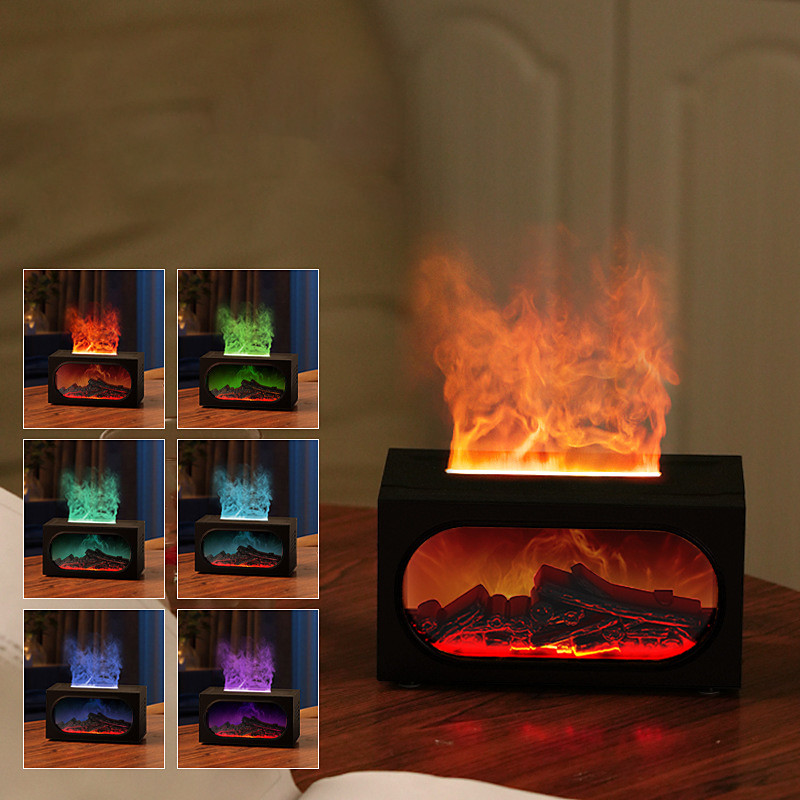3D fireplace aromatherapy machine desktop retro simulation mini rainbow flame atmosphere light humidifier Usb power supply bedroom living room atmosphere light