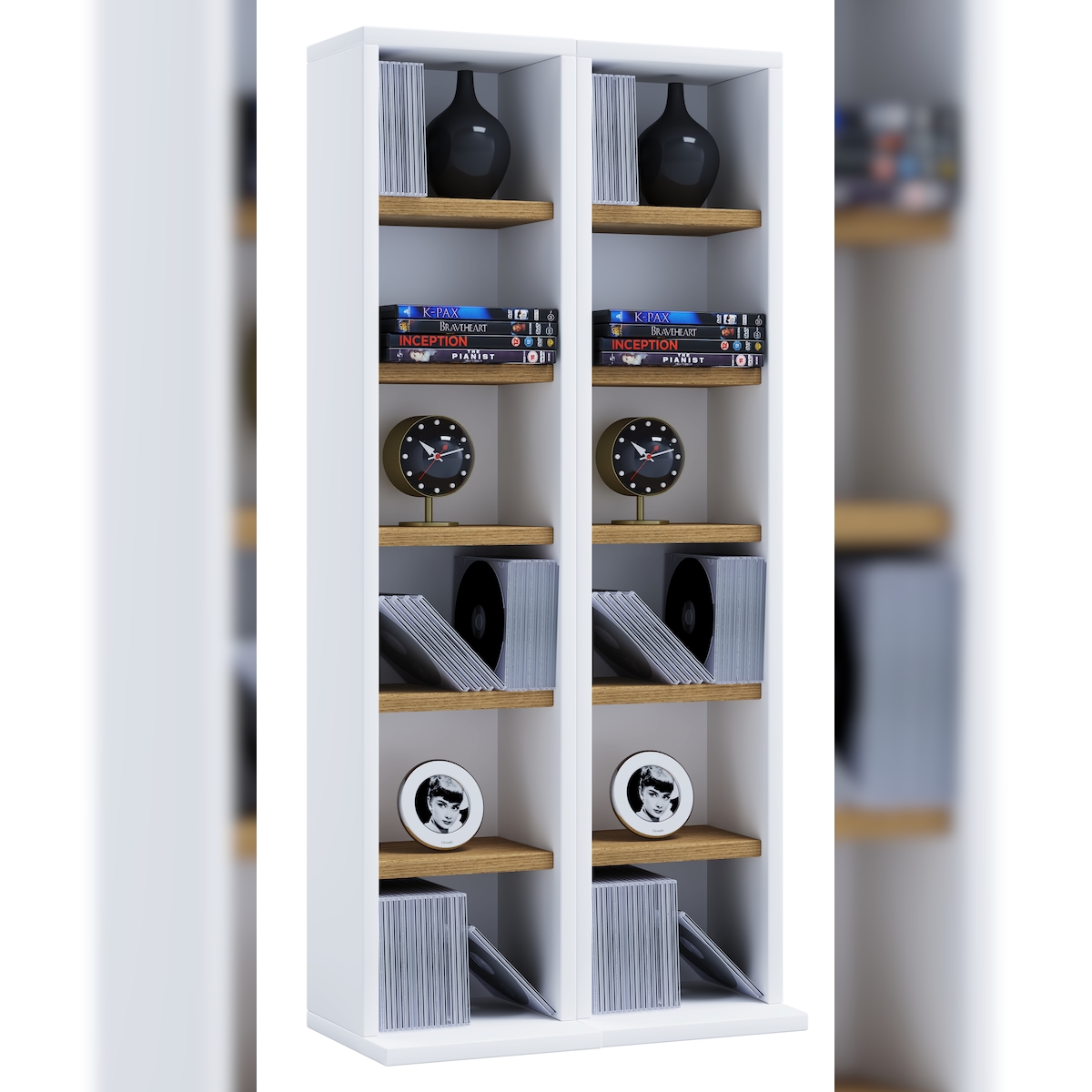 VCM CD / DVD Media Regal Milano Weiß / Honig-Eiche H. 92 x B. 42 x T. 20 cm