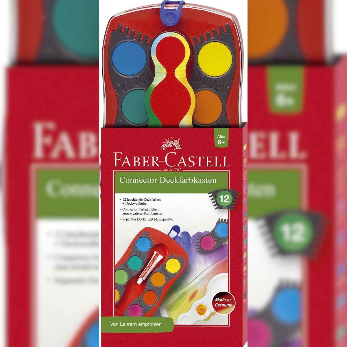 FABER-CASTELL 125030 CONNECTOR Farbkasten - 12 Farben, inkl. Deckweiß, rot