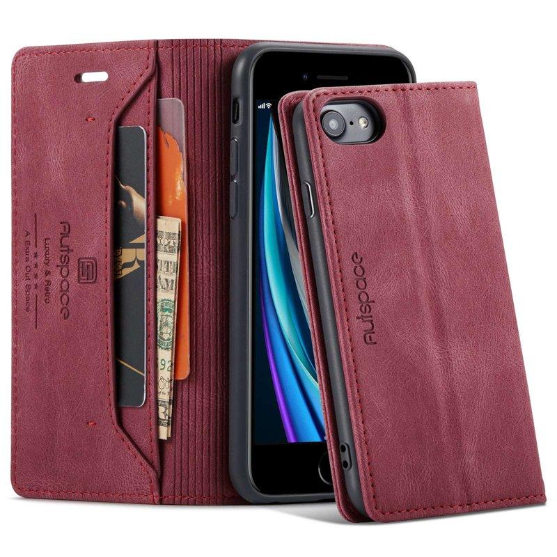 AUTSPACE A01 iPhone 6/7/8/SE (2020) Plånboksfodral Konstläder - Röd