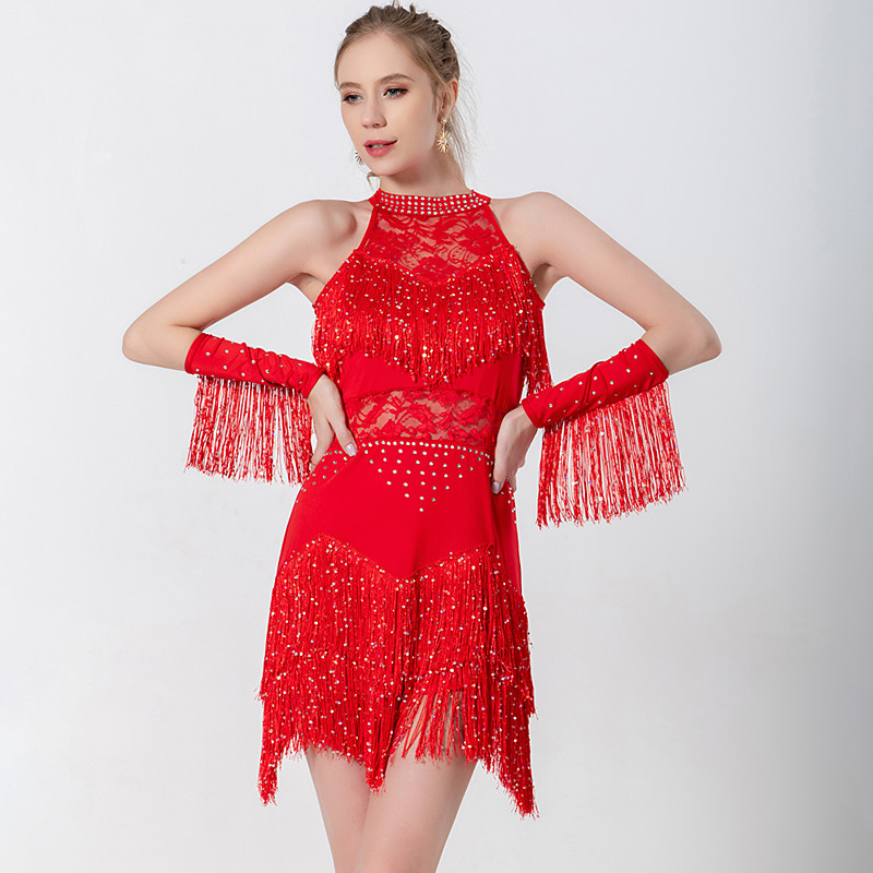 Latin Ballroom Dance Dresses for Women Tassel Salsa Rumba Cha Cha Party Competition Dress