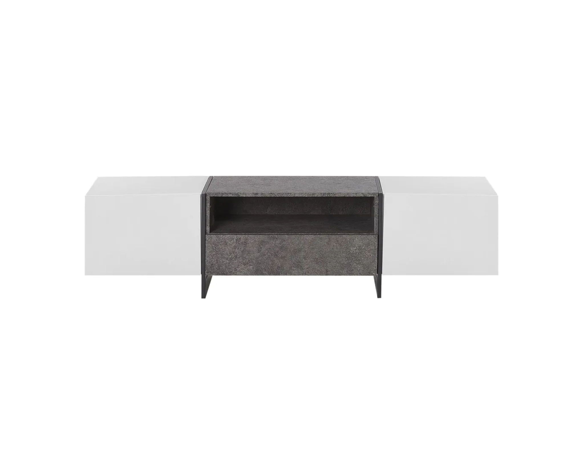 TV Lowboard Weiß mit LED-Leuchten (teil Marmor Optik) 9079