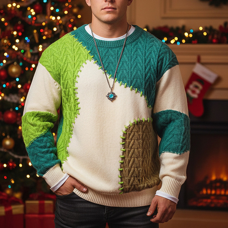 Men's Pullover Sweater Jumper Knit Sweater Ribbed Knit Regular Tops Patchwork Knitted Color Block Crew Neck Fashion Basic Vacation Daily Wear Clothing Apparel Fall Winter Green Khaki M L XL