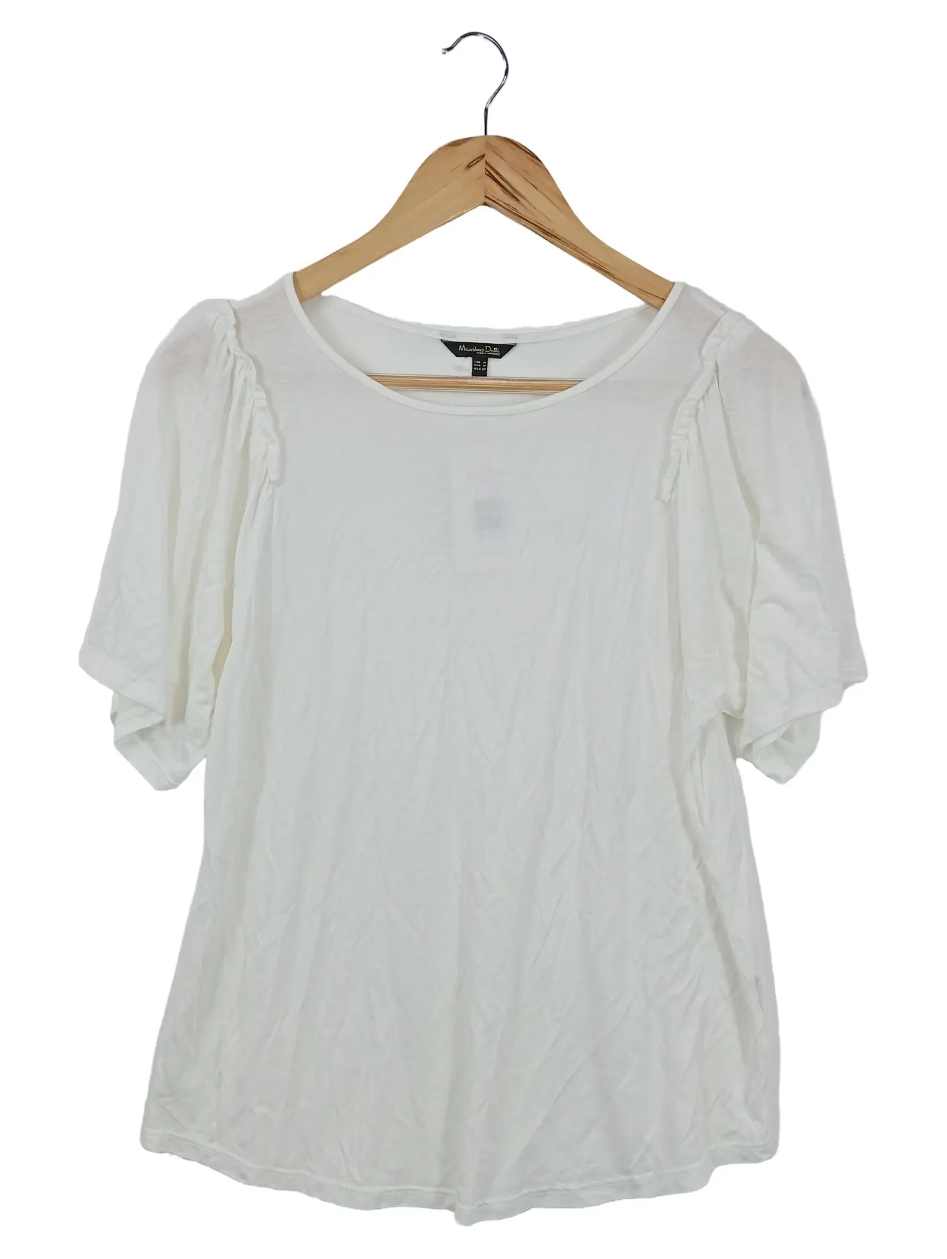 Massimo Dutti Damen T-Shirt, cremeweiß, Gr. S - Second Hand