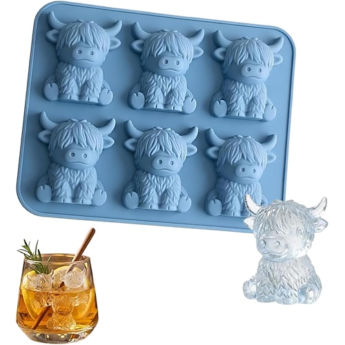 Mini-Eiswürfelform mit Hochlandkuhmotiv, niedliche 3D-Eiswürfelform aus Silikon für Whisky und Cocktails Eiskaffee, wiederverwendbarer Eiswürfelbereiter in Tierform für Getränke, Barzubehör