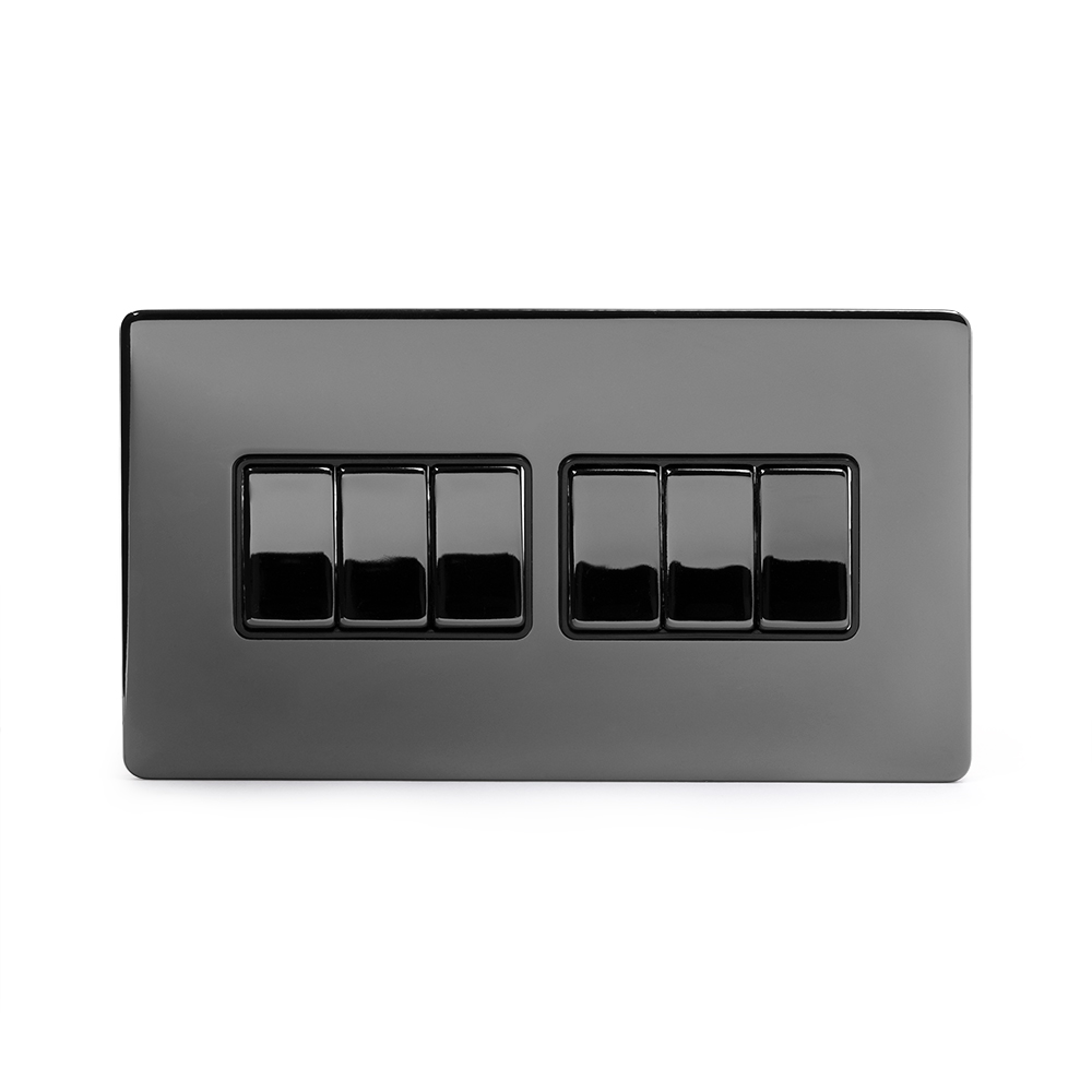 Soho Lighting Black Nickel 6 Gang 2 Way 10A Light Switch Blk Ins Screwless - Size: 86mm x 146mm x 4.5mm