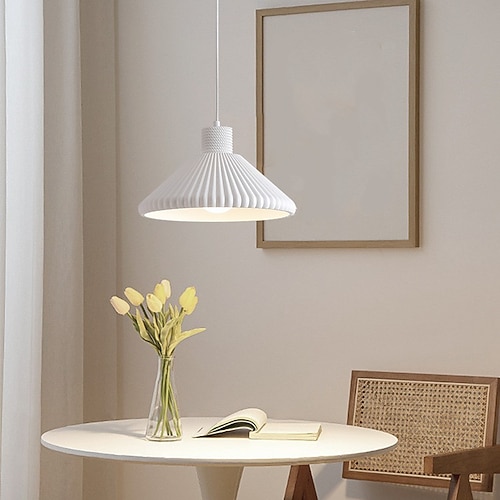 Lampadario a sospensione bianco di metà secolo, con paralume conico plissettato, grande lampada a sospensione da soffitto, moderna lampada a sospensione da soffitto per isola da cucina, lampadario per