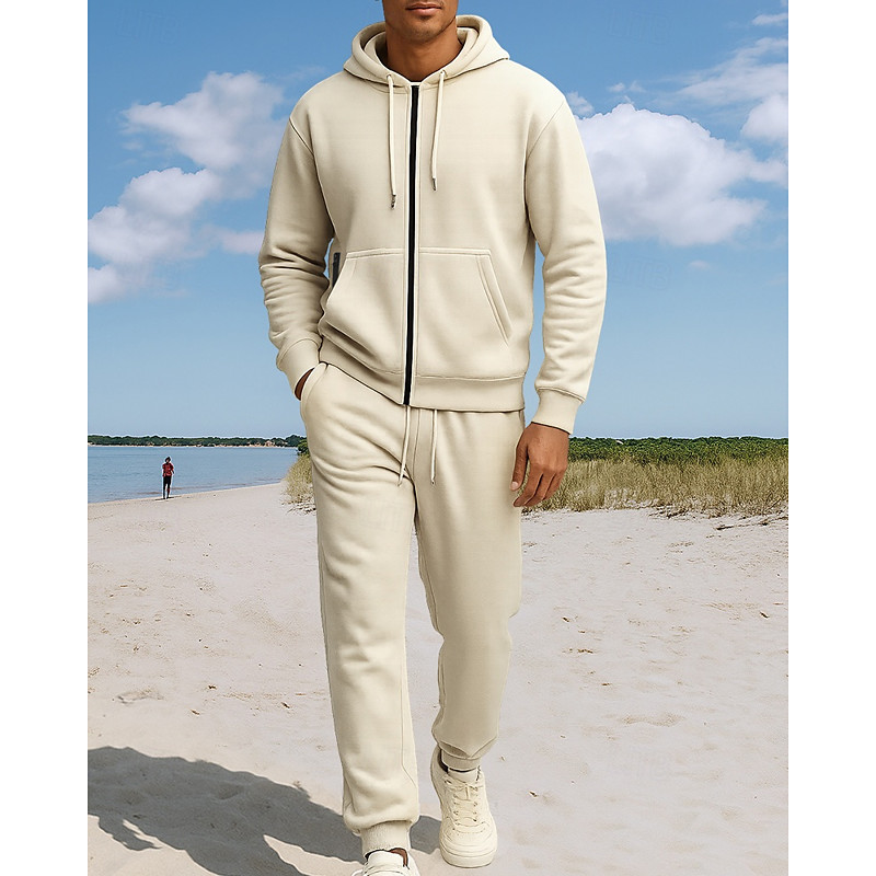 Men's Tracksuit Fleece Hoodie Two Piece Outfits Full Zip with Pocket Solid Colored Clothing Suit Fall Black Army Green Outdoor Travel Sports High Waist Thermal Warm Long Sleeve Sport Activewear