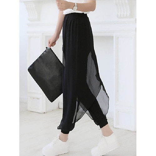 Per donna Joggers Pantaloni Culotte Pantaloni casual Moda Streetwear Essenziale Lunghezza intera Vita Alta Semplice Elastico in vita Rete Confortevole Micro-elastico Quotidiano Vacanza Streetwear Nero