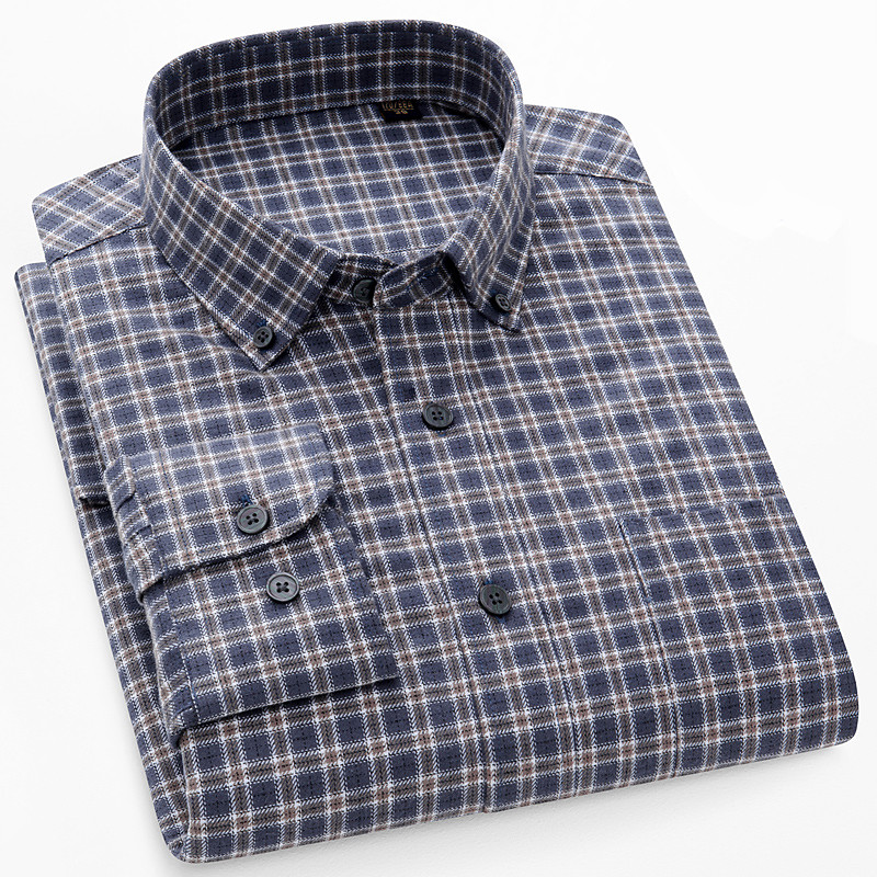 Men's Shirt Dress Shirt Button Down Shirt Plaid Shirt Plaid / Striped / Chevron / Round Daily Wear Corporate Clothing Whitekhaki Dark Navy Royal Blue Brown Long Sleeve Shirt Collar All Seasons