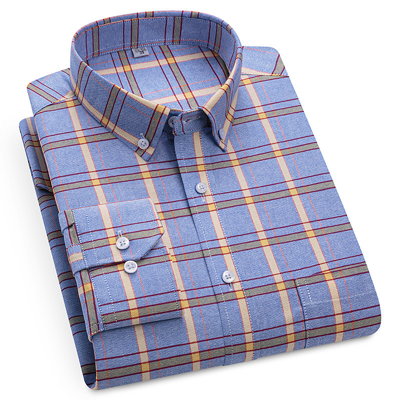 Men's Shirt Dress Shirt Button Down Shirt Oxford Shirt Plaid Shirt Collared Shirt Plaid / Striped / Chevron / Round Daily Wear Corporate Clothing Yellow Dark Navy Blue Sky Blue Long Sleeve Shirt
