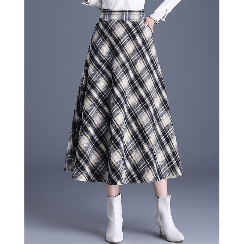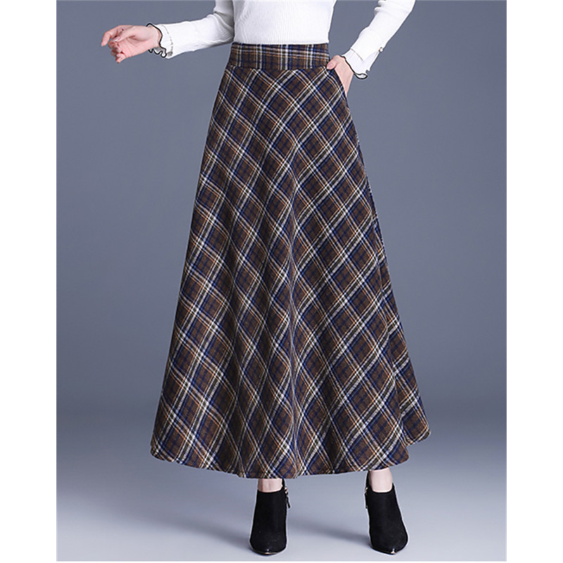 Women's Plaid Skirt Long Skirt Elegant Retro Vintage Maxi High Waist Skirts Plaid Color Block Pocket Long Micro-elastic Daily Casual Daily Apricot Red Purple Fall 100% Polyester