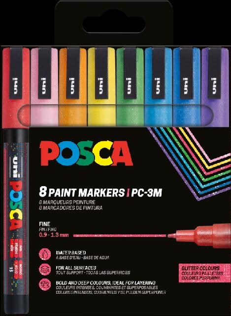 Marker Uni Posca Corner PC3-8 Glitter sort. Farben