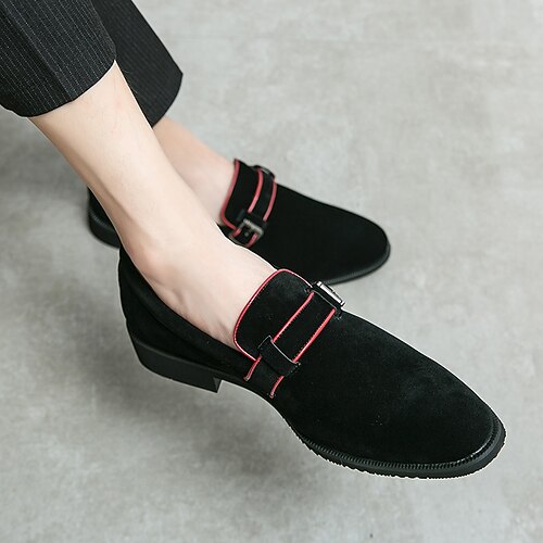 mocassini marroni da uomo con fibbia, eleganti scarpe slip-on in pelle scamosciata, perfette per l'ufficio, occasioni semi-formali e business casual, comode scarpe eleganti per uomo e matrimoni