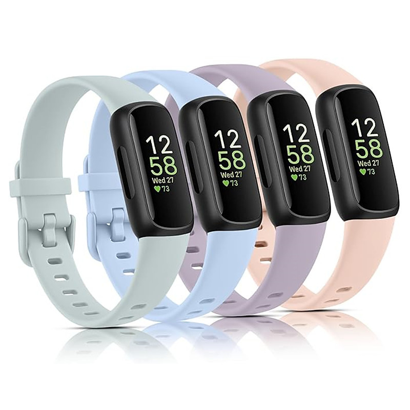 4 Pack 3 Pack Smart Watch Band Compatible with Fitbit Versa 4 Sense 2 Versa 3 Sense Soft Silicone Smartwatch Strap Adjustable Women Men Sport Band Replacement Wristband