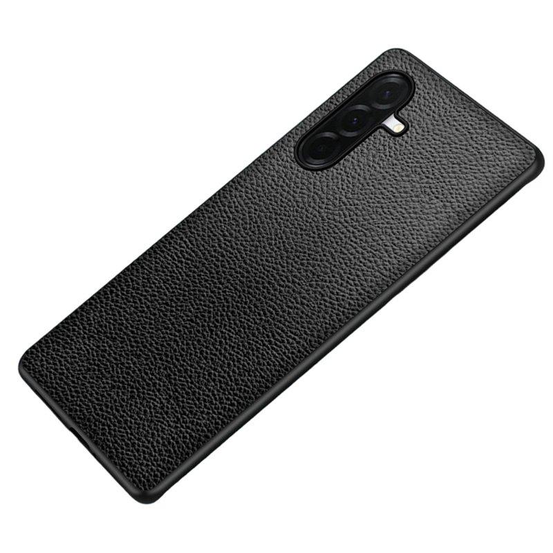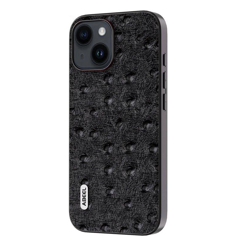 ABEEL Mobilskal till iPhone 15 Plus Ostrich Textur Äkta Läder Svart