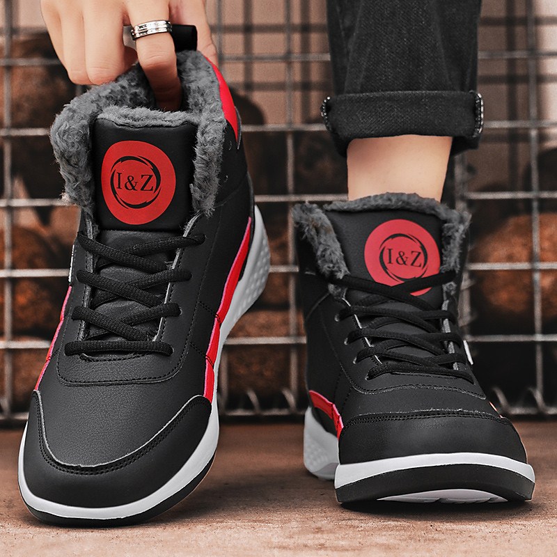 Men's Waterproof High-Top Sneakers with Warm Plush Lining – Stylish Outdoor Athletic Shoes with Yellow Accents and Durable Sole