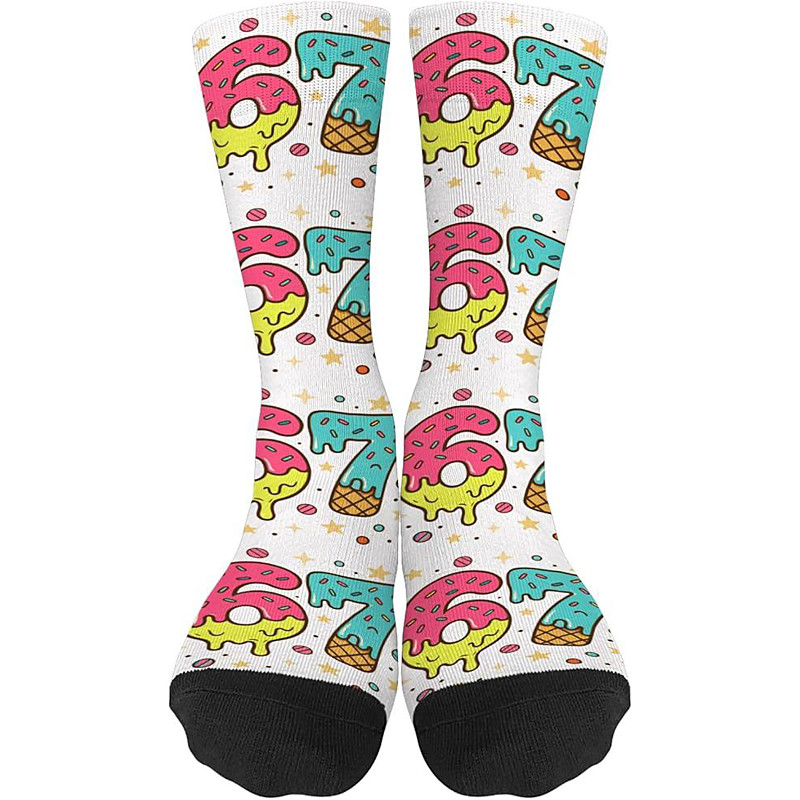 Funny Six Seven 67 Meme Socks Athletic Crew Socks Casual Seamless Printed Socks with Soft Breathable Fabric Comfortable Everyday Sport Style for Walking Running Gym Wear
