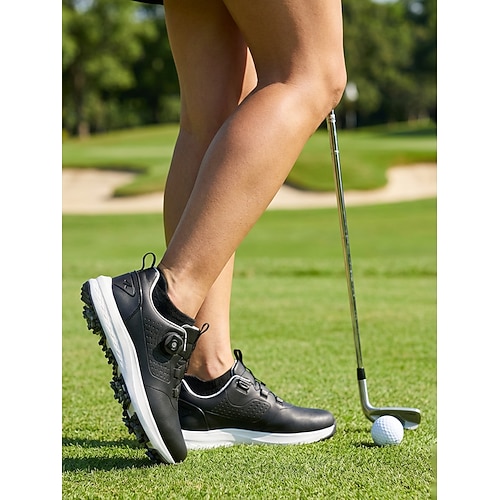 scarpe da golf da donna con chiusura a quadrante bianco – scarpe da ginnastica ammortizzate senza tacchetti per golfiste, camminate, allenamento, campo pratica e sport all'aria aperta