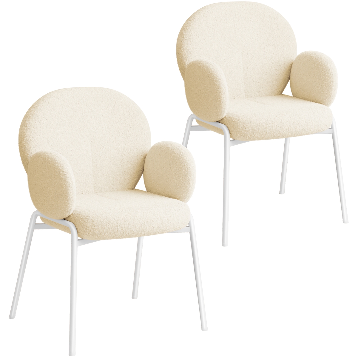 TECTAKE Stuhl Scandi gepolstert, Bouclé-Stoff 2er Setcreme