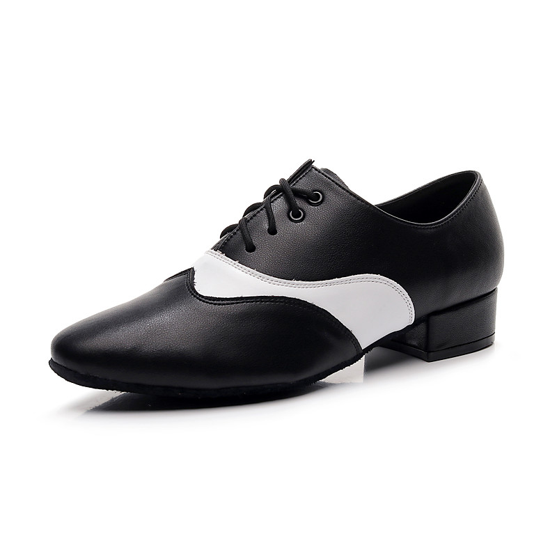 Men's Black White Faux Leather Lace-Up Ballroom Dance Shoes with Split Sole Classic Oxford Style for Adults Ideal for Latin Salsa Waltz Tango Stage Performance Practice Ballroom Events
