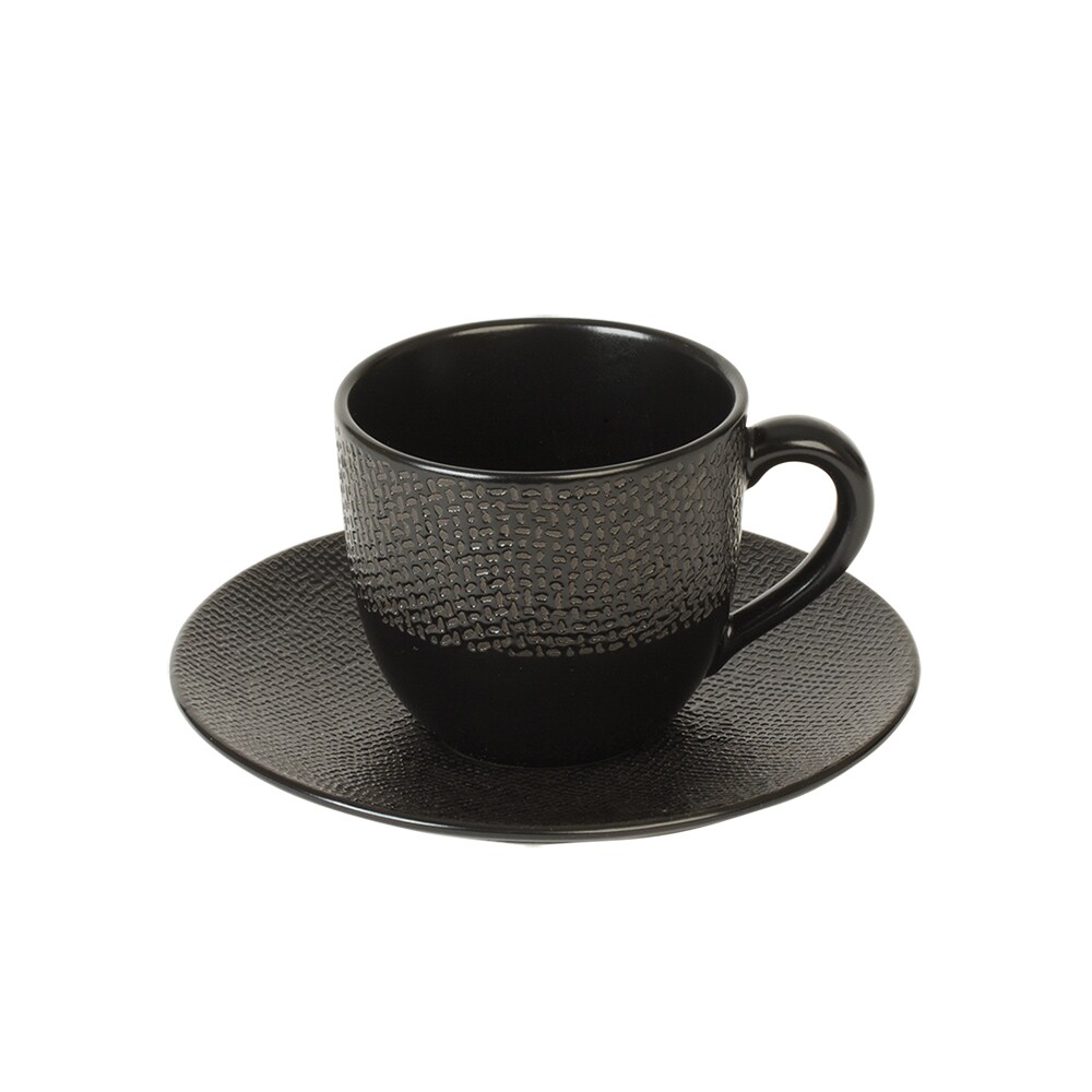 Kaffeetasse und Untertasse Vésuvio schwarz 12 cl x6 - Rond Grès Table Passion