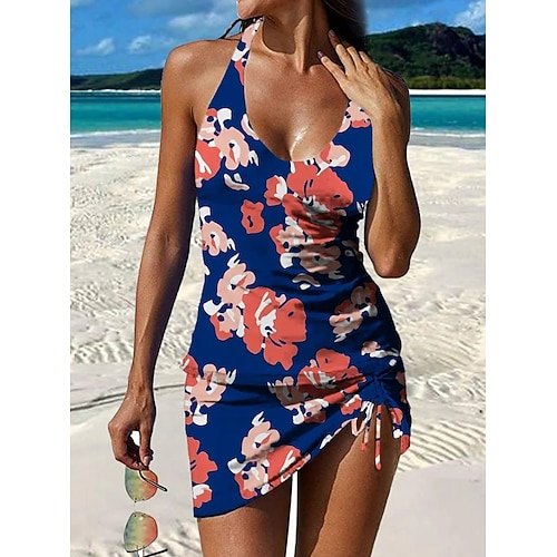 Per donna Costumi da bagno Tankini Due pezzi Gonna Costume da bagno Coulisse Elegante Vacanza Floreale Scollo Tondo Senza Maniche Costumi da bagno