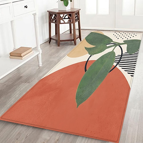 tappeto da corridoio minimalista, pianta, arte geometrica, tessuto di flanella stampato, decorazione per pavimenti, tappetino antiscivolo, morbido, zerbino, tappeto da ingresso, bagno