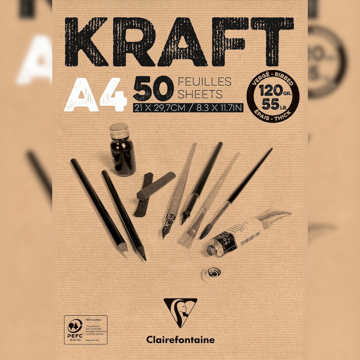 Clairefontaine 5x Block Kraftpapier, geleimt, 100 Blatt A4 120g - 975815C
