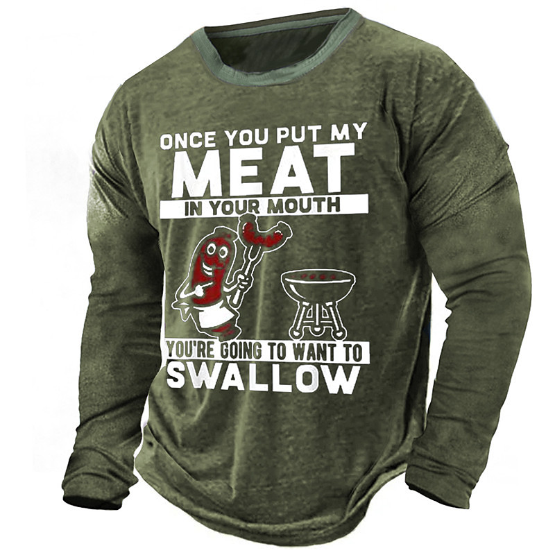 Men's Cartoon Letter T Shirt Graphic Tee Long Sleeve T shirt 3D Print Crew Neck Shirt Designer Retro Vintage Outdoor Vacation Daily Dark Green Army Green Dark Blue Spring Fall Clothing Apparel S M