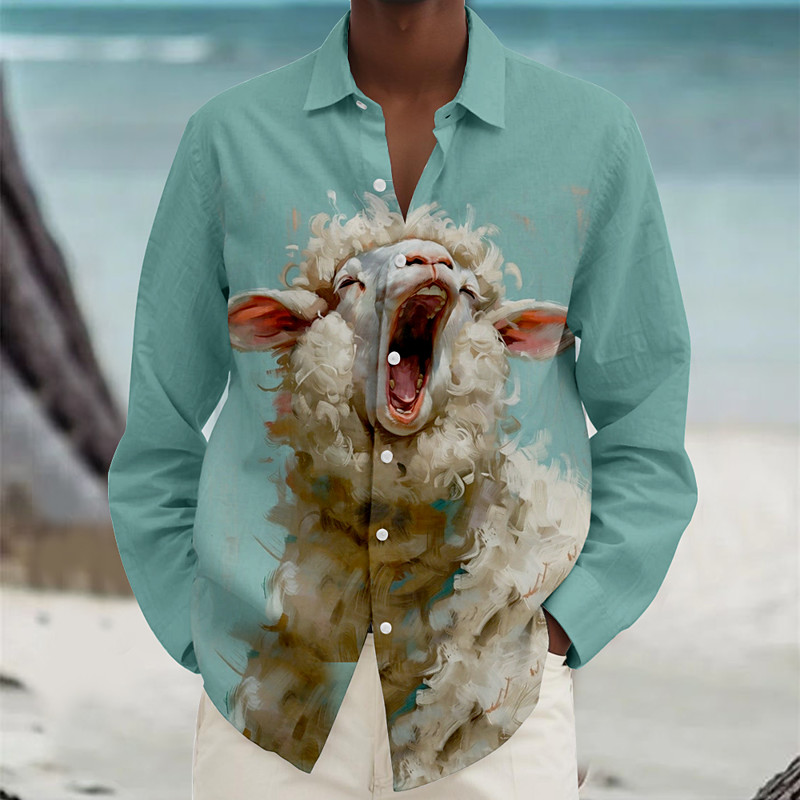 Men's Sheep Button Up Shirt Long Sleeve Hawaiian Vacation Daily Fall Winter Spring Summer Collared Shirts 3D Print Green