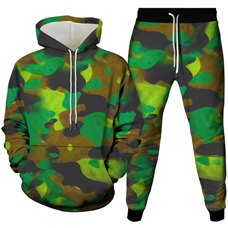 Men's Camouflage 2pcs 3D Sweatshirt Sets Tracksuit Hoodie Sweatshirt Long Sleeve Long pants Hooded Casual Daily Athleisure 3D Print Spring Fall Winter Army Green