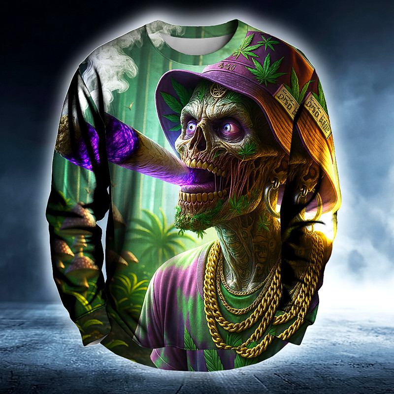 Halloween Men's Devil Weed Leaf Sweatshirt Punk Party Crew Neck Vacation Dark Green Green Crewneck 3D All Seasons Designer