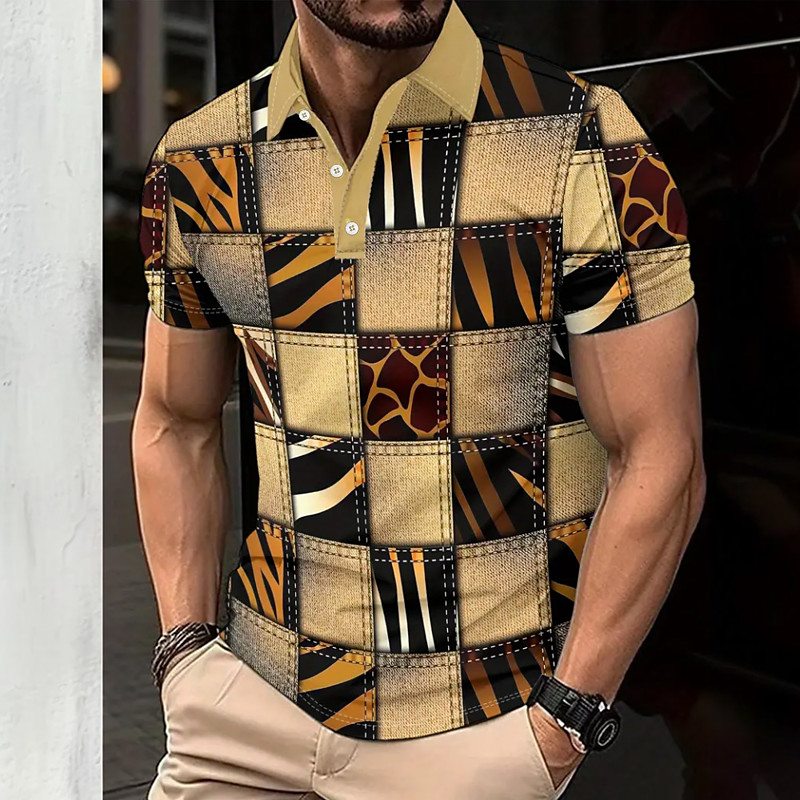Men's Geometic Polo Short Sleeve Polo Shirts Collared Shirts Casual Athleisure 3D Print Buttons Summer Blue Brown Green