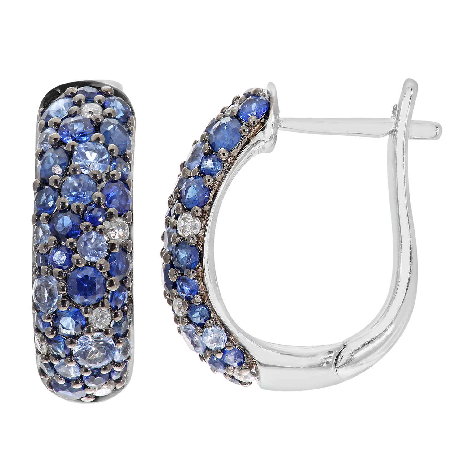 Diamant L'eternel Womens 9ct White Gold Diamond and Sparkling Shades of Blue Sapphire Hoop Earrings - One Size