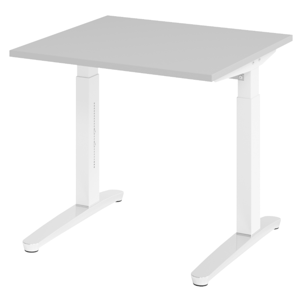 bümö manuell höhenverstellbarer Schreibtisch 80x80 in grau, Gestell in weiß/alu - PC Tisch höhenverstellbar & klein, höhenverstellbarer Tisch Büro,